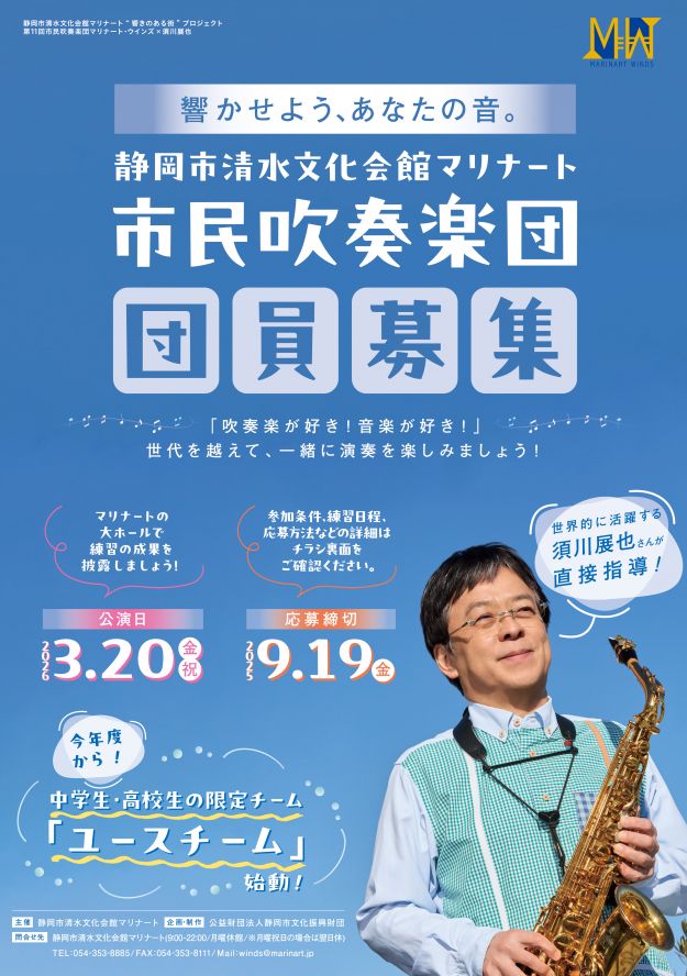 静岡市清水文化会館マリナートで活動する市民吹奏楽団の団員を募集します!